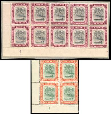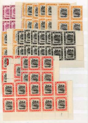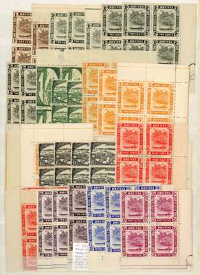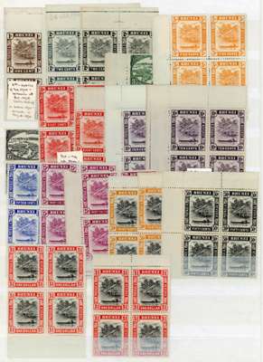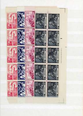 1947-51 unmounted o.g. collection on stocksheets with singles including three sets, 75 blocks (many Plate blocks) including two sets and numerous better perfs. Also UPU bottom two rows fine unmounted, and $5 and $10 Plate blocks of ten, strangely stuck down. Most are lightly toned and viewing is strongly recommended. SG 79-92