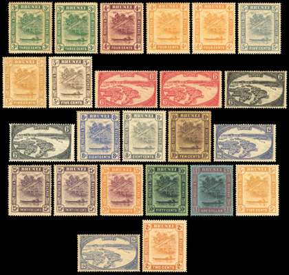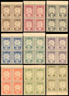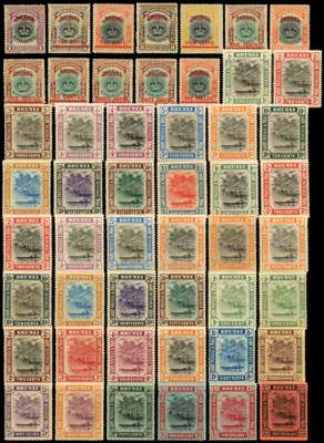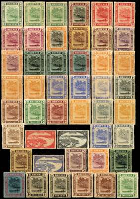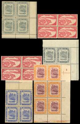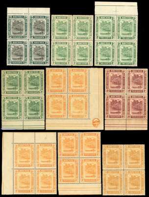 1895-1937 mint range on stocksheets. 1895 set less 25c in blocks of four, 50c and $1 without gum; 1906 set, some with patchy gum as usual, otherwise fine; 1907 set with 4c shades, and duplicate set to 50c, some with dark gum; 1908-22 set with duplicates to $1, the $5 with slightly dried gum, the $25 with better gum than usual although with evidence of several previous mounts, dark gum on many of the other values; 1924-37 set (2) with mixed gum, 5c orange-yellow with ‘5c’ retouch very lightly hinged, and 2c orange unissued, together with some blocks including 30c unmounted corner block of six with Vignette Plate 2