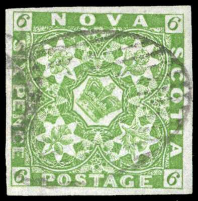 Nova Scotia 1851-60 6d yellow-green, SG 5