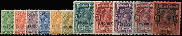 Falkland Islands 1912-20 set of 11 to £1 optd 'Specimen', SG 60s/9s, mint