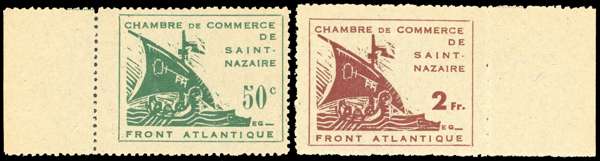 1945 German occupation of St Nazaire 50c. and 2fr. both with sheet margin, unused without gum as issued, very fine. Michel 1-2 €600