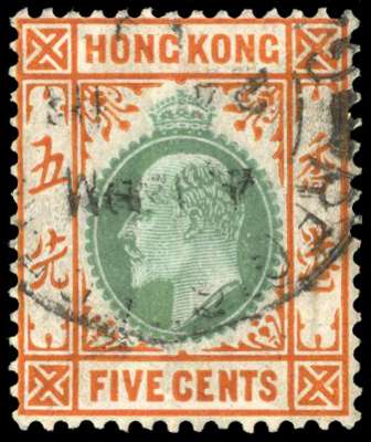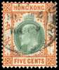 Hong Kong 1904-06 5c dull green and brown-orange with wmk inverted, SG 79aw