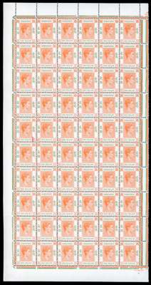1946-8 $1 red-orange and green left pane of sixty, showing R3/1 short leg to ‘R’ and R4/1-2 retouched characters. Central horizontal fold and R5/1 with arricator remains, otherwise fine unmounted o.g. Ex Cooper. SG 156a, £1868