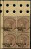 I.C.S. Patiala 1885 1a brown-purple error overprint double block of 4, SG 11c Mint