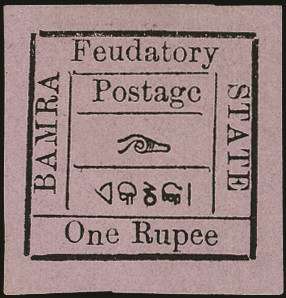 I.F.S. Bamra 1890 1r black/rose-lilac, showing error "Postagc" (R2/1) SG 24c Mint