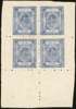 1922 ¼a dull blue on thickish glazed wove, perf 7 on two or three sides, complete pane of four, very fine unused. A rarity as a pane, and choice quality. SG 7, £1,100++.