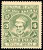 1943 4p green, type 26 watermark Umbrella, perf 13x13½, large part o.g., a couple of minor bends and a little off centre as usually seen, still a fine example of this key KGVI rarity. SG 85b £3000