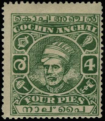 I.F.S. Cochin 1943 4p green, type 26, WMK UMBRELLA SG 85b Mint