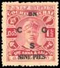 OFFICIAL: 1942-43 NINE PIES on 1½a purple (from 1919-23 issue) surcharge type 20, characteristic dried and slightly toned o.g. still above average for this rare stamp. SG O57 £1400