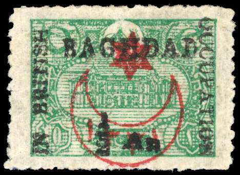 1917 (1 Sept) ½a on 10pa green (GPO Constantinople), mint unmounted o.g. Only 1261 issued, with perfs and centring far above average, in addition with a complete clear offset of the star and crescent overprint on reverse. SG 13 cat £450