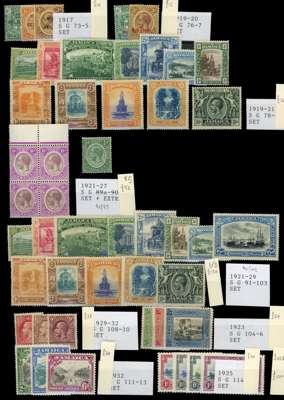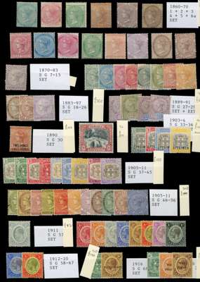 Mint on stockcards including 1860 to 1s, 1870 to 5s, 1883 to 5s, 1889 to 2½d, 1890 2½d on 4d, 1903 to 5d overprinted “SPECIMEN”, 1905 to 5s, 1912 to 5s, 1919, 1921 to 10s, 1929 to 9d, 1932 to 6d, 1935 Jubilee, mainly fine. (118) SG 1/117