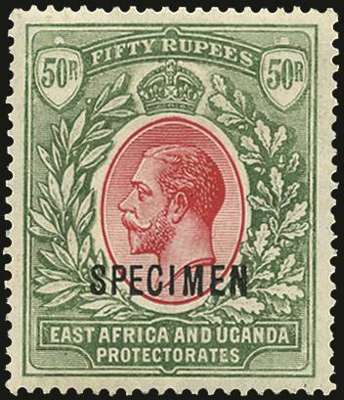 1921 50r carmine and green, Script wmk, opt 'SPECIMEN', large part o.g. A little heavily hinged, still fine with good colour and appearance.