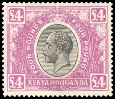 1922-27 £4 black & magenta, large part o.g. with a small paper adhesion on reverse, still a very presentable example of this high value with good colour. SG 98 £3000