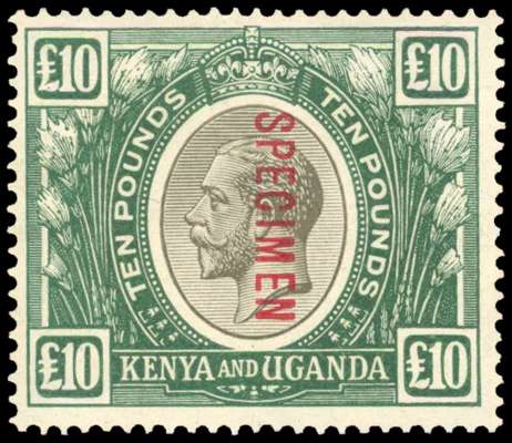 1922-27 £10 black & green, optd ‘SPECIMEN’ in red, large part o.g. fine. SG 100s £1200