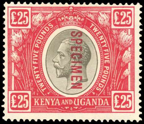 1922-27 £25 black & red, optd ‘SPECIMEN’ in red, large part o.g. a fine example of this scarce high value. SG 102s £2500
