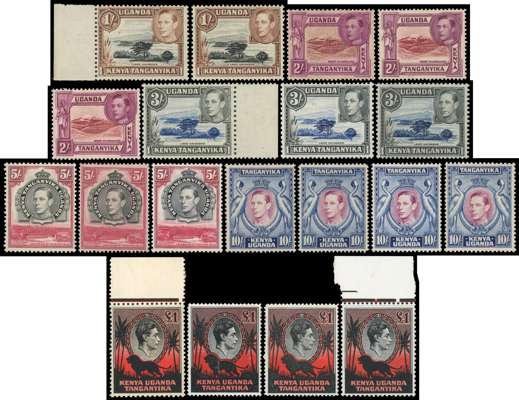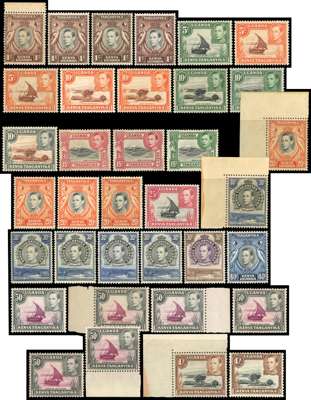 1938-54 set with all perfs per SG and some extra shades per CW, unmounted o.g. Mostly toned to a greater or lesser degree, the £s having survived best. SG 131-150b, £2900+