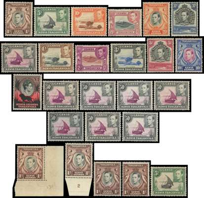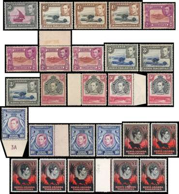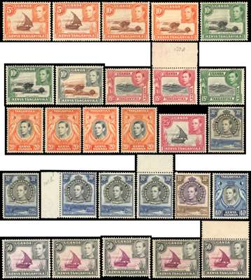 1938-54 set with all perfs and shades per SG (and some extras per CW), including an extra set of first perfs and additional 50cs. All unmounted save for a few additional odds, but all with gum toned to a greater or lesser degree. Very highly catalogued. SG 131-150b
