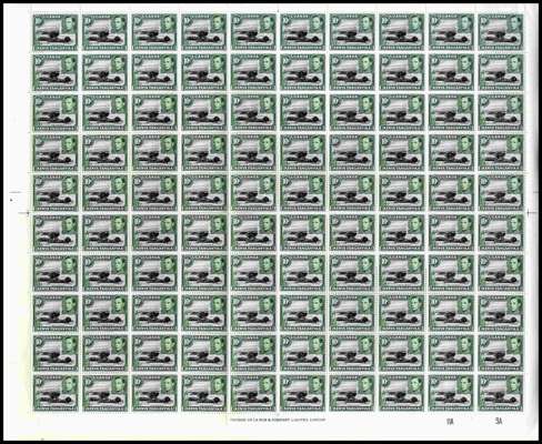 1950 10c black and green perf 13 x 12½ complete Plate 11A-9A sheet of 100. R7/5 no dot in scroll (fully constant on this plate). Fine unmounted o.g. SG 135d, £550