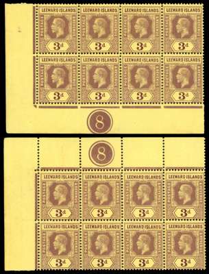 Leeward Islands SG 51c Plate blocks mint