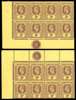 1912-22 3d purple on buff paper two Plate 8 blocks of eight from the top and bottom left corners of the left pane, each o.g., hinged on the selvedge only. SG 51c
