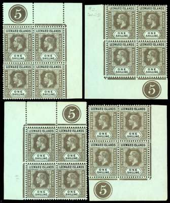 Leeward Islands SG 54c Plate blocks mint