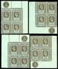 1912-22 1/- black on blue-green paper, olive back. Plate 5 blocks from the four corners of the sheet, unmounted o.g., R9/2 with dot in ‘S’ variety. SG 54c