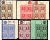 1931-2 reversion to Die I set of six Plate blocks (the ½d does not exist in this form), o.g., unmounted save for one 1d. 1d and 1/- from top left corner of left pane, the others from the top right corner of the right pane with sheet numbers. The 6d lacks the side selvedge. Some gum toning but of good appearance, a difficult set to assemble. SG 81, 83-7
