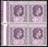 1944 (May) printing of the 6d ordinary paper marginal block of four, R4/1 RP broken ‘E’ and 3/1 break in base of value tablet. O.g., very lightly hinged on R3/1 only. Ex Halward. SG 109ab, £600