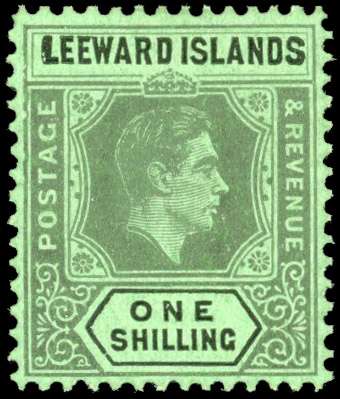 1938 1/- black on emerald paper with R9/6 RP ‘DI’ flaw, large part o.g. SG 110a, £600