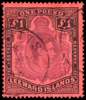 1942 £1 purple and black on carmine with R5/12 ‘broken lower right scroll’ variety, cancelled St Kitts cds ‘6 MY 43’ fine used. SG 114ae £1,300