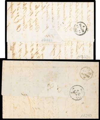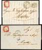 POSTAL HISTORY: INCOMING MAIL: 1863 two entire letters from Naples to same addressee both franked with Sardinia 40c carmine, clear to large margins, the first by double-ring (9.2) ds and the second by neat single-ring (9.10) cds, both with Malta arrival cds for ‘FE 11’ and ‘OC 12’ respectively, the latter Modena transit (10.10). An attractive pair