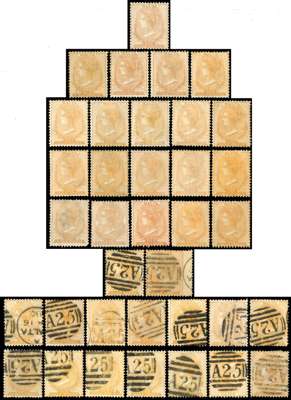 1860-81 mint/unused and used ½d selection arranged on a Hagner sheet including1860-63 No Wmk ½d buff unused, 1863-81 Wmk CC ½d (19, with small part og or no gum) and used (16). Condition very mixed. (36)