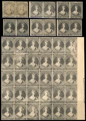 QV to KGVI plate proof selection arranged on Hagner sheets including Chalon Heads with 1d, 2d, 3d, 4d, 6d, 1s, in pairs and 2d block of thirty, 1882-90 1d (2), 2d, 6s (2), blocks of four, 2½d, pair, and 5d, both in pink, 1898 Pictorials ½d and 5s, KGV Heads selection with blocks, 1919 Victory 1s, pair, KGVI 2d, 4d, 3d, 9d and 1940 Centennial 3d marginal block of four. Good to fine