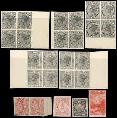 New Zealand QV to KGVI plate proof selection arranged on Hagner sheets