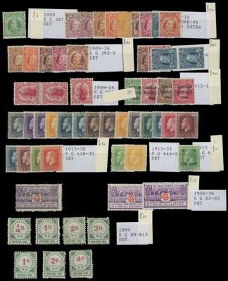 1882 to 1940 mint selection on stockcards including 1882-1900 values to 1s, 1891-95 values to 8d with assorted underprints, 1896 3d lemon and 4d pale green, 1895-1900 values to 1s, 1898 to 5s, 1899 to 5s, 1902 to 2s, 1907-08 values to 1s, fiscals 2s, 2s6d, 3s, 5s, plus 2s6d used, 1940 3/6 on 3s6d to 22/-on 22s, 1940 values to £1, 25s, 30s, £2, £3, £4 and £5. Mixed with many good to fine. (149)
