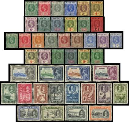 Nigeria: Mint on stock card including 1914 to £1, 1921 to 10s, 1935 S Jubilee, 1936 to £1, mainly fine. (43) SG 1/45