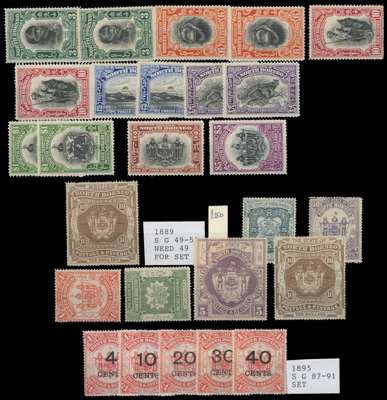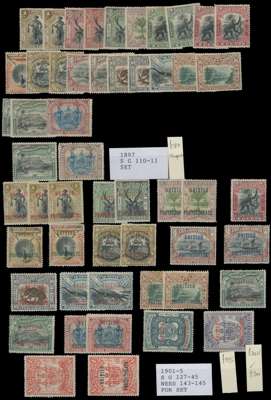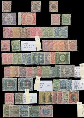 1883 to 1931 mint selection on stock cards including 1883 2c plus used, 1883 8c on 2c, 1883 50c and $1, 4c and 8c, 1886 to 10c, 3c on 4c and 5c on 8c, 1886-87 to $2, 1888 to $2, 1890 2c on 25c and 8c on 25c, 1891 6c on 10c, 1894 to 24c, 1894 to $10, 1897 to 24c, 1899 to 4c on $2, 1901 to $1, 1904 4c on $5 and 4c on $10, 1909 to 24c, 1911 to $5, 1916 to 10c on 12c, 1916 to 24c, 1931 to $5. A little mixed with many good to fine. (219)SG 1/302