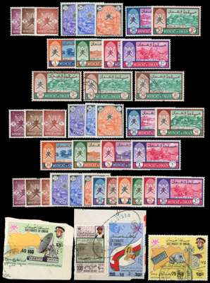 1966-78 mixed mint and used selection arranged on a Hagner sheet including 1966-67 to 10r. (2, both mounted), 5r, type II, used (3), 1970 to 1r unmounted mint, 1978 surcharges used 40b on 150b on small piece and 50b. on 150b. on piece with National Day 100b, 75b. on 250b. Mostly good to fine. (43)