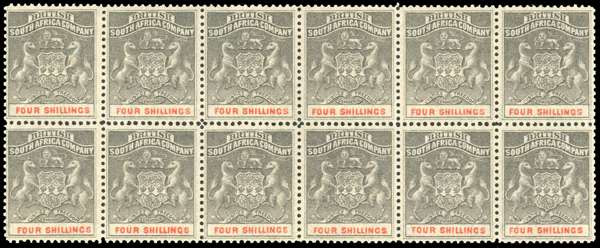 Rhodesia. 1892-94 4s grey-black and vermilion block of twelve mint