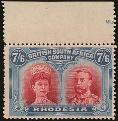RHODESIA 1910 SG161var Mint 7s6d carmine and light blue, variety "Gash in ear", marginal u/m