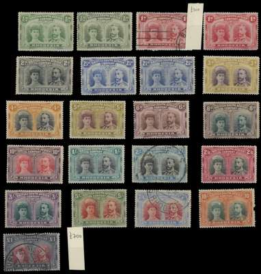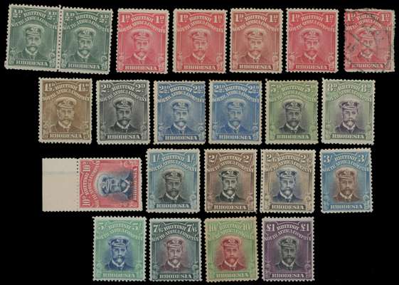 RHODESIA: 1892 to 1924 mint selection on stockcards including 1892 to £1, £2 used, £5 and £10 (perfin), 1892 ½d on 6d and