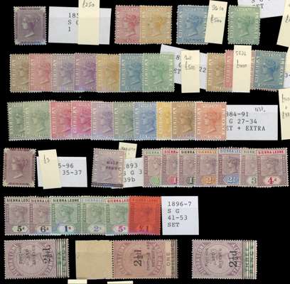 SIERRA LEONE: Mint on card including 1859 6d purple, 1872 to 1s, 1876 to 1s, 1883 to 4d, 1884 to 1s, 1893 ½d on 1½d ‘PFNNY