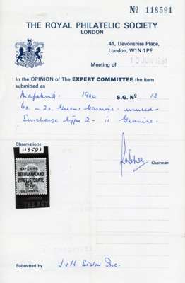 1900 6d on 2d green and carmine RPS certificate (1981) large part o.g. SG 13