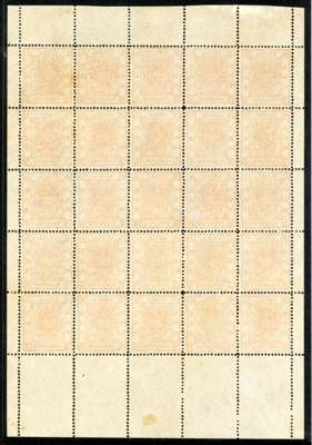 1878 3ca brown-red on thin paper, 2½mm spacing, complete sheet of 25 with full margins, light gum toning affects a couple of stamps and small wrinkle at lower left but very rare and most attractive, a few hinge remnants in margins, stamps unmounted o.g., a gem! SG 2; Chan 2