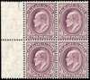 1904-12 KEVII 2d purple in left-hand marginal mint block of four R3-4/1-2, mint large part o.g. with the lower pair unmounted, very fine. SG 45ax £1000+