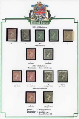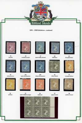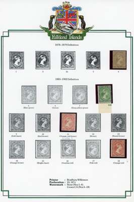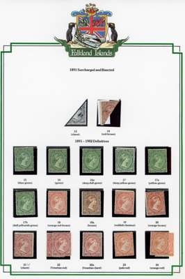 1869-98 mint collection (65 + 7 used) on printed leaves, commencing with FR1 on piece signed Aimé Brun, then a reasonable (if not always accurate) representation of the 1878-89 issues with SG 1, 3 (2), 4, 5 no gum, 6 a very fair example, 7-12 mixed; 1891-1902 set with all spaces (per Part 1 shades/printings) filled, mixed condition but including better examples and well worth viewing; 1898 2s6d (2, one fine) and 5s, and Specimen pair o.g. Needs care but should repay it