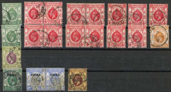 Hankow. 1863-1915 duplicated collection (150) on stocksheet and card, including four CHINA overprints. Very mixed condition of strikes and cancels, but includes SG Z426 (corner perf fault), 450, 450a, 499 (2) and numerous other decent values
