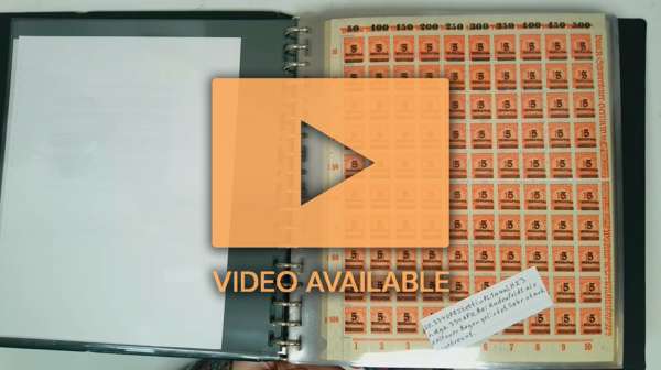 Inflation: 1923 (Nov) 5Mrd on 10Mio M red, perforated group of 53 complete sheets, all different from a selection of cities showing different obliterations in top margin, and differences from the original printings in other margins, the Erfurt sheet with damaged ‘5’ variety (pos 4) and whole in top of ‘5’ (pos 99), a good range of obliteration at top including a Stettin printing in largely separated sheet, held together by left margin; a fine study