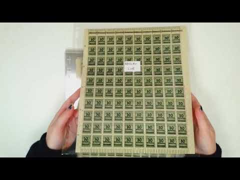 Inflation: 1923 (Nov) 10Mrd on 50Mio M blue, perforated group of 23 complete sheets, all different from a selection of cities showing different obliterations in top margin or numbers at base, a Konigsberg sheet with misplaced surcharge, the Stettin sheet partly separated along middle and the three different Erfurt without margin at left, otherwise fine full o.g.