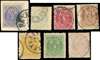 1873 skilling values with perf 14x13½ 2sk tied to piece and 8sk with large part cds and perf 12½ 3sk, 4sk and 16sk plus Official 4sk perf 12½ used with some trimmed perfs and 8sk mauve faded used, all with Reykjavik cancels